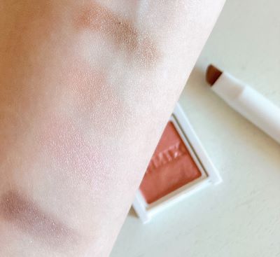 こちらもシアーな発色で、パパっとつけるだけだと色味はあまり出ず、